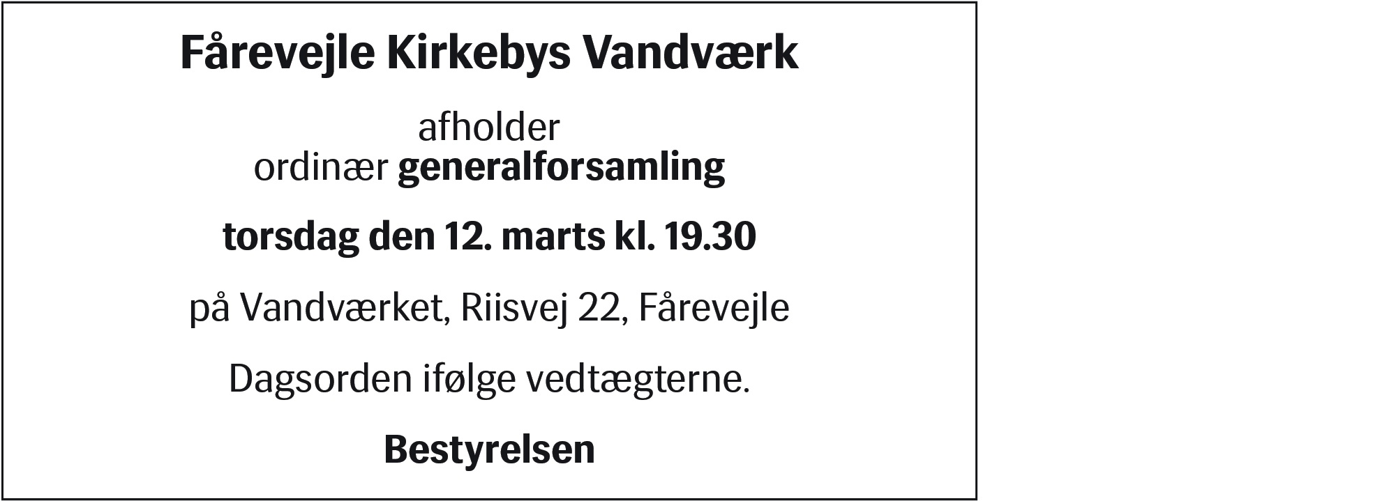 Fårevejle Kirkeby’s Vandværk er et over 100 år gammelt vandværk, det blev stiftet d. 17. januar 1907.